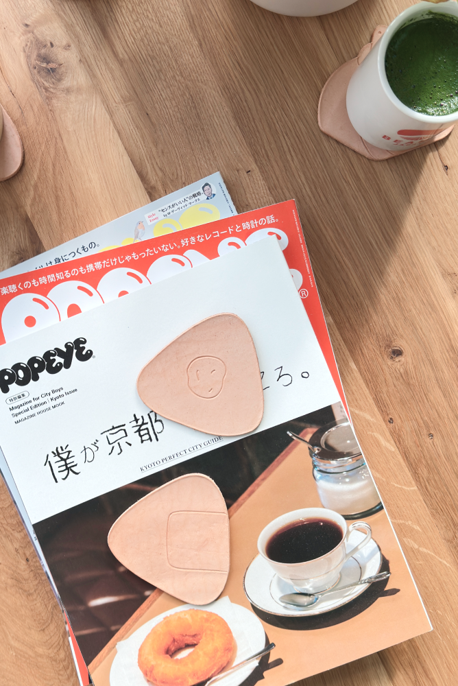 These coasters are made from vegetable-tanned leather and coated with a beeswax finish for some waterproofing. Yet, like other vegetable-tanned items, they'll develop patina and absorb stains over time, especially from beverages like wine and coffee. Avoid excessive moisture as this will cause coasters to warp